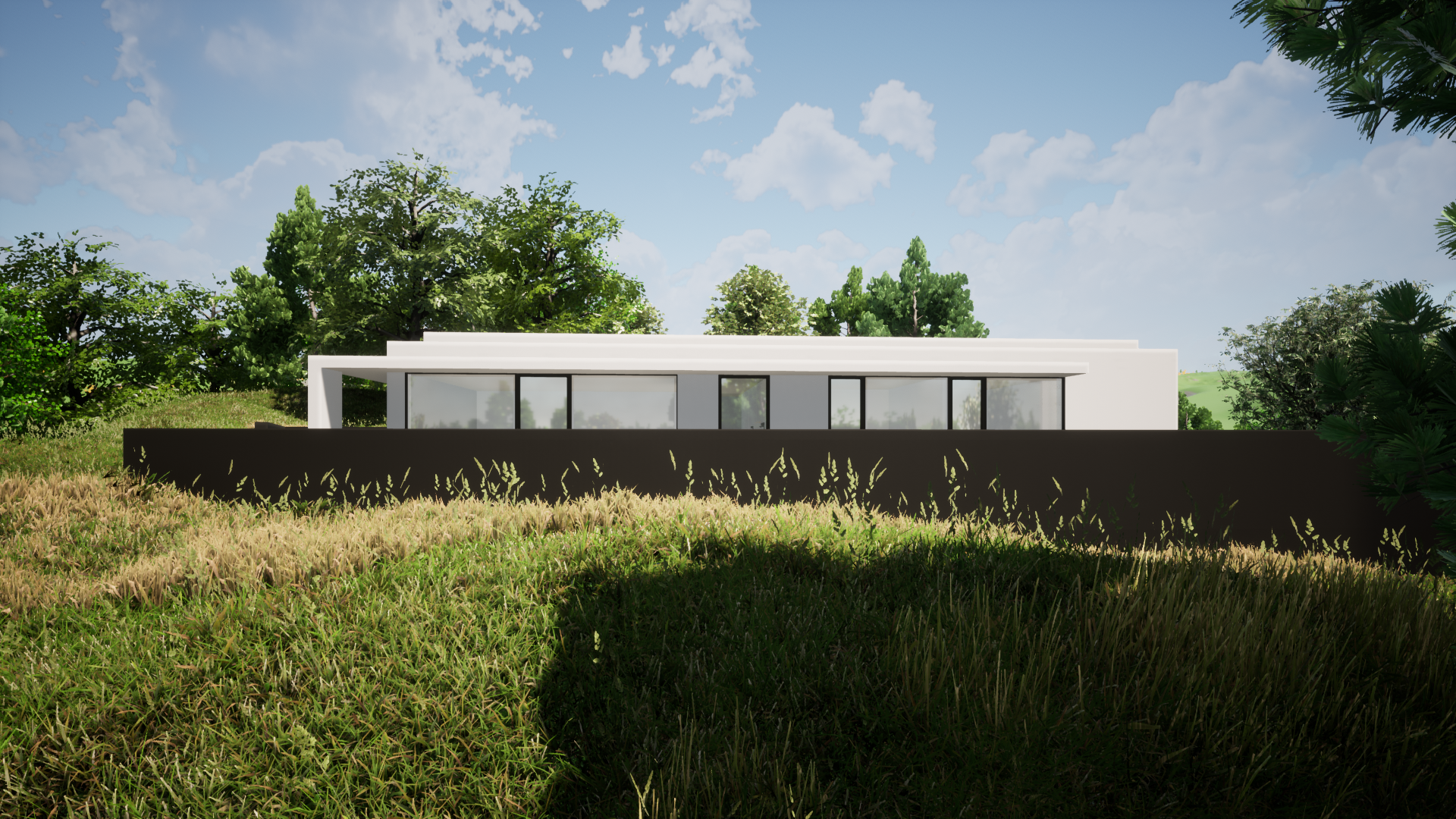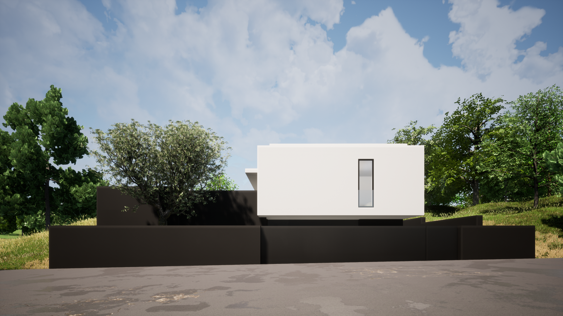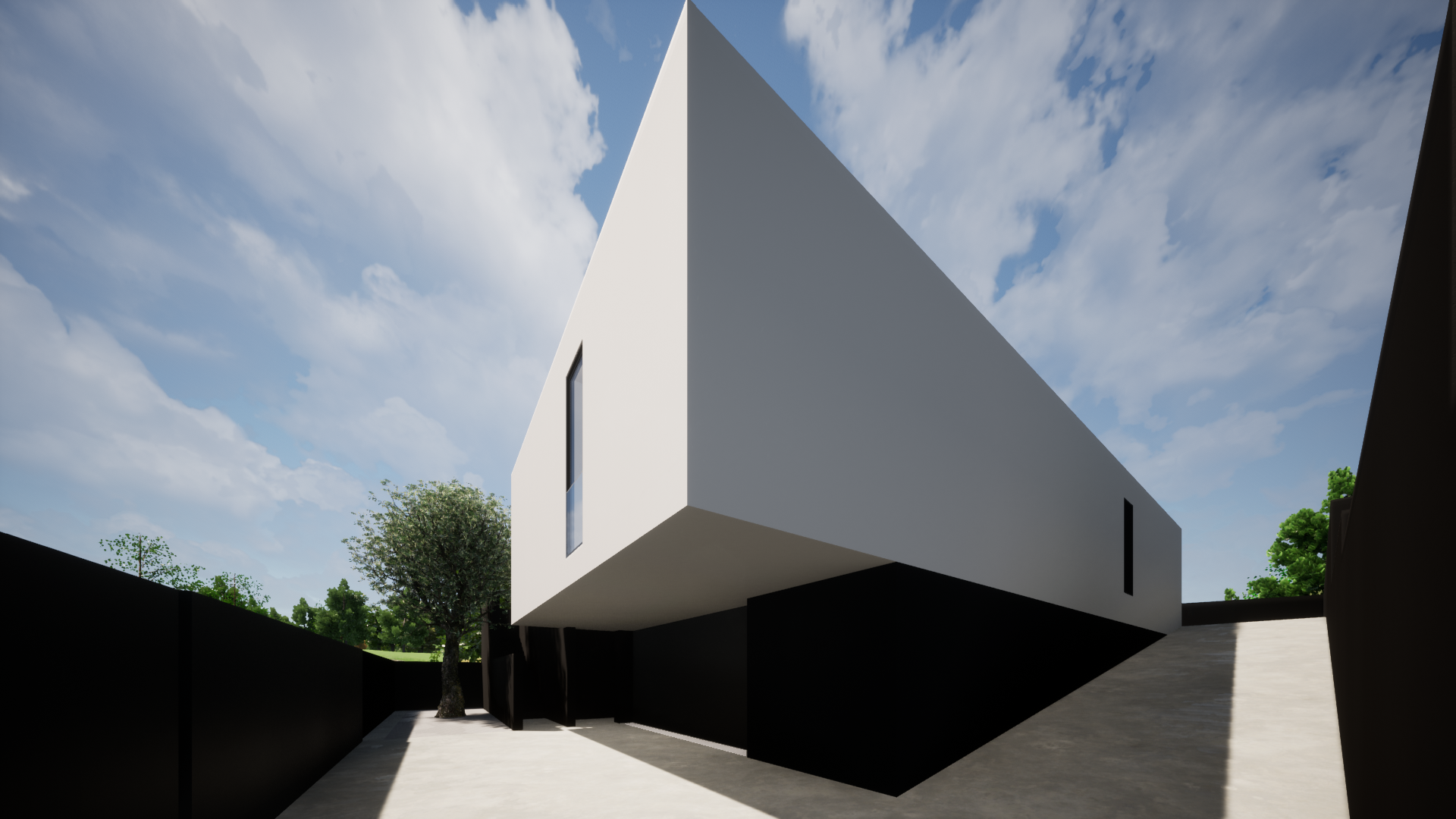 Esta casa implanta-se num terreno com ligeira inclinação, tendo uma exposição solar favorável. Insere-se numa zona rural perto da cidade, englobada num conjunto habitacional previsto em loteamento. Por estar inserida num loteamento obriga ao cumprimento de alguns parâmetros previamente estabelecidos, nomeadamente, a obrigatoriedade do piso 0 se destinar a uso de garagem e o piso 1 a uso habitacional. Isso tem influência direta na volumetria da edificação, que se divide em 2 pisos.