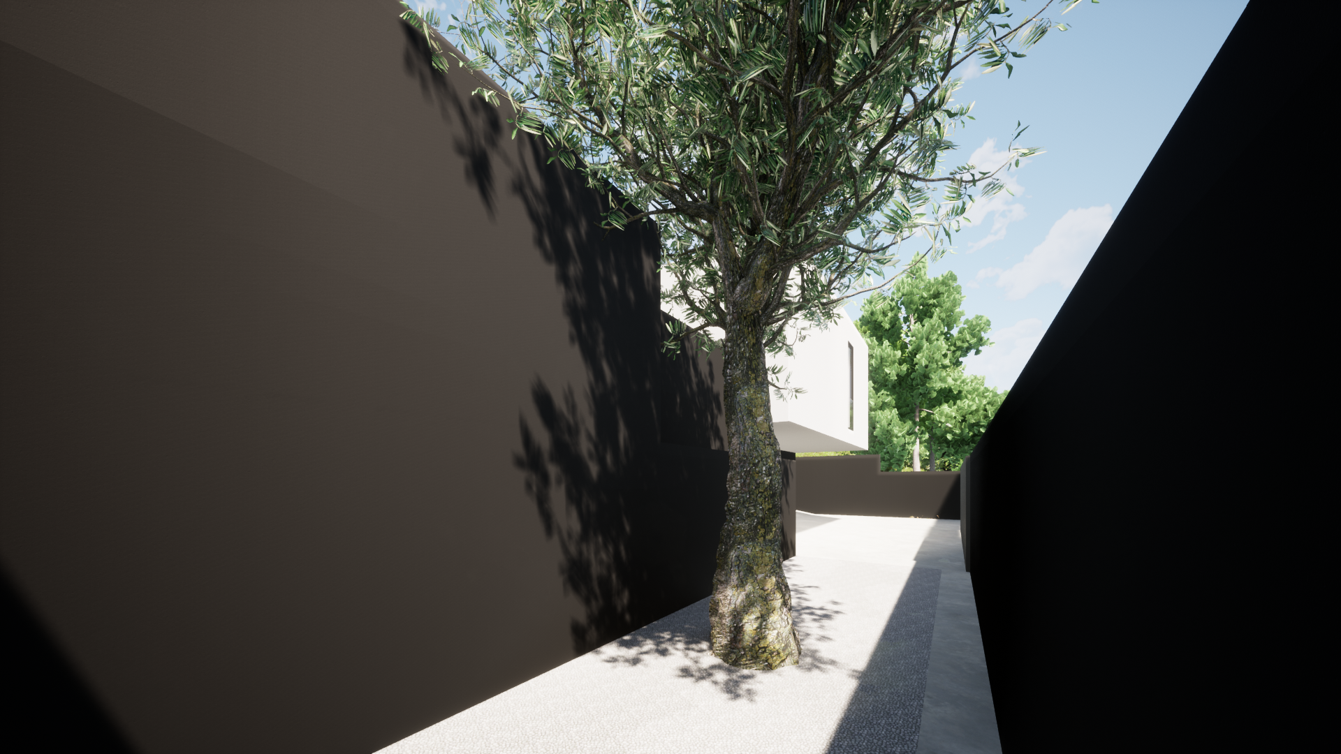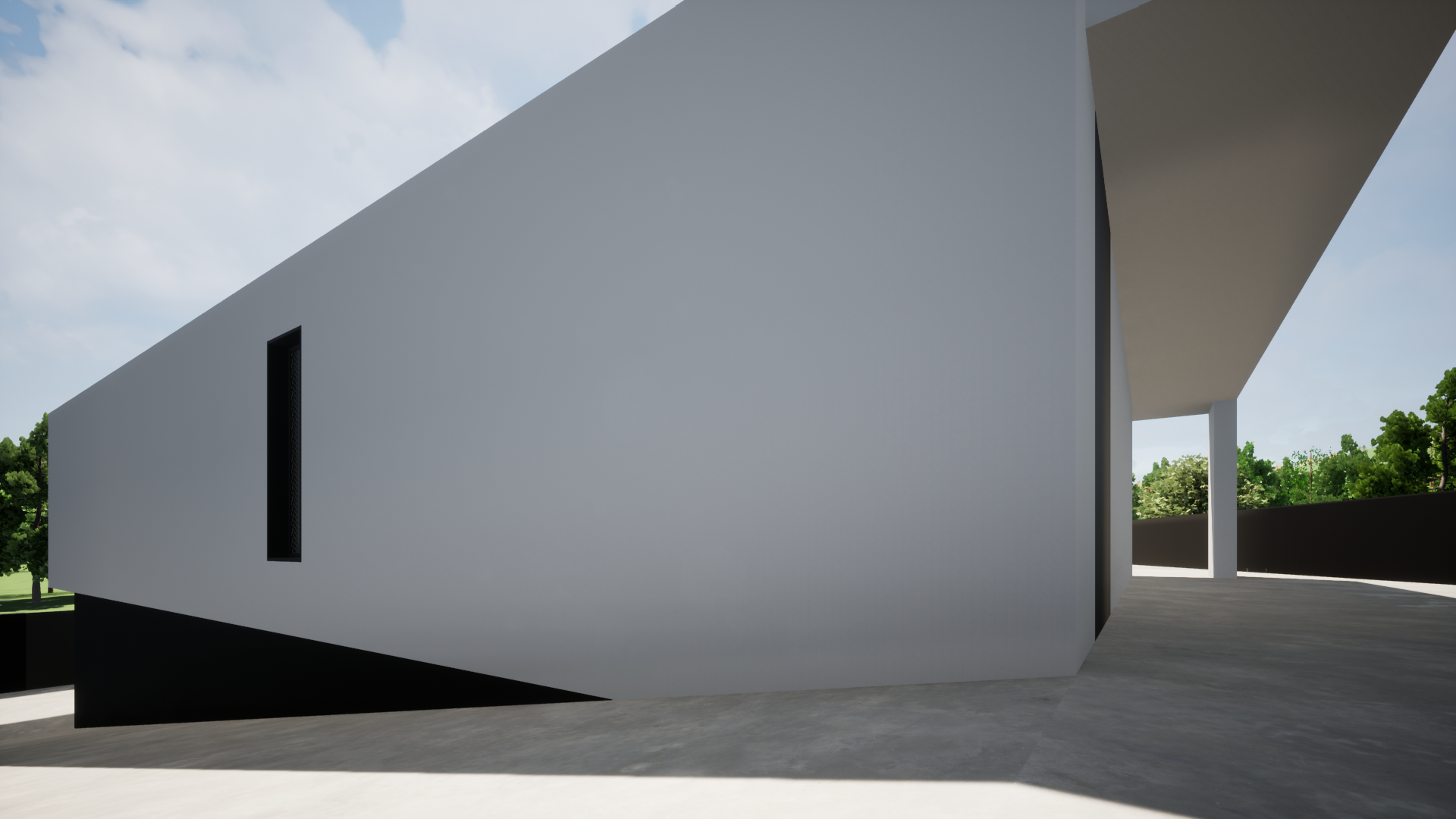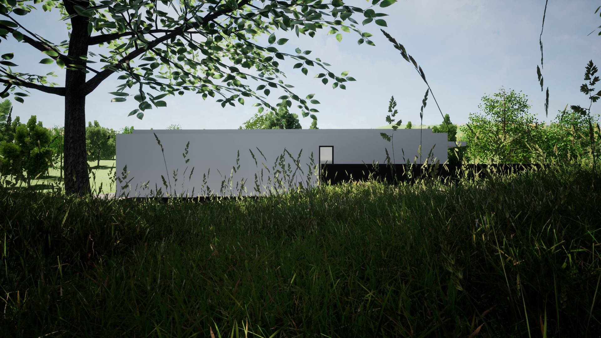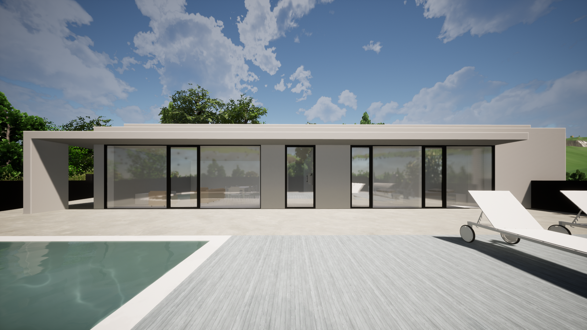 Esta casa implanta-se num terreno com ligeira inclinação, tendo uma exposição solar favorável. Insere-se numa zona rural perto da cidade, englobada num conjunto habitacional previsto em loteamento. Por estar inserida num loteamento obriga ao cumprimento de alguns parâmetros previamente estabelecidos, nomeadamente, a obrigatoriedade do piso 0 se destinar a uso de garagem e o piso 1 a uso habitacional. Isso tem influência direta na volumetria da edificação, que se divide em 2 pisos.