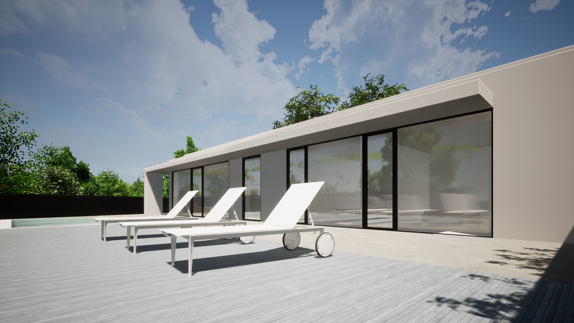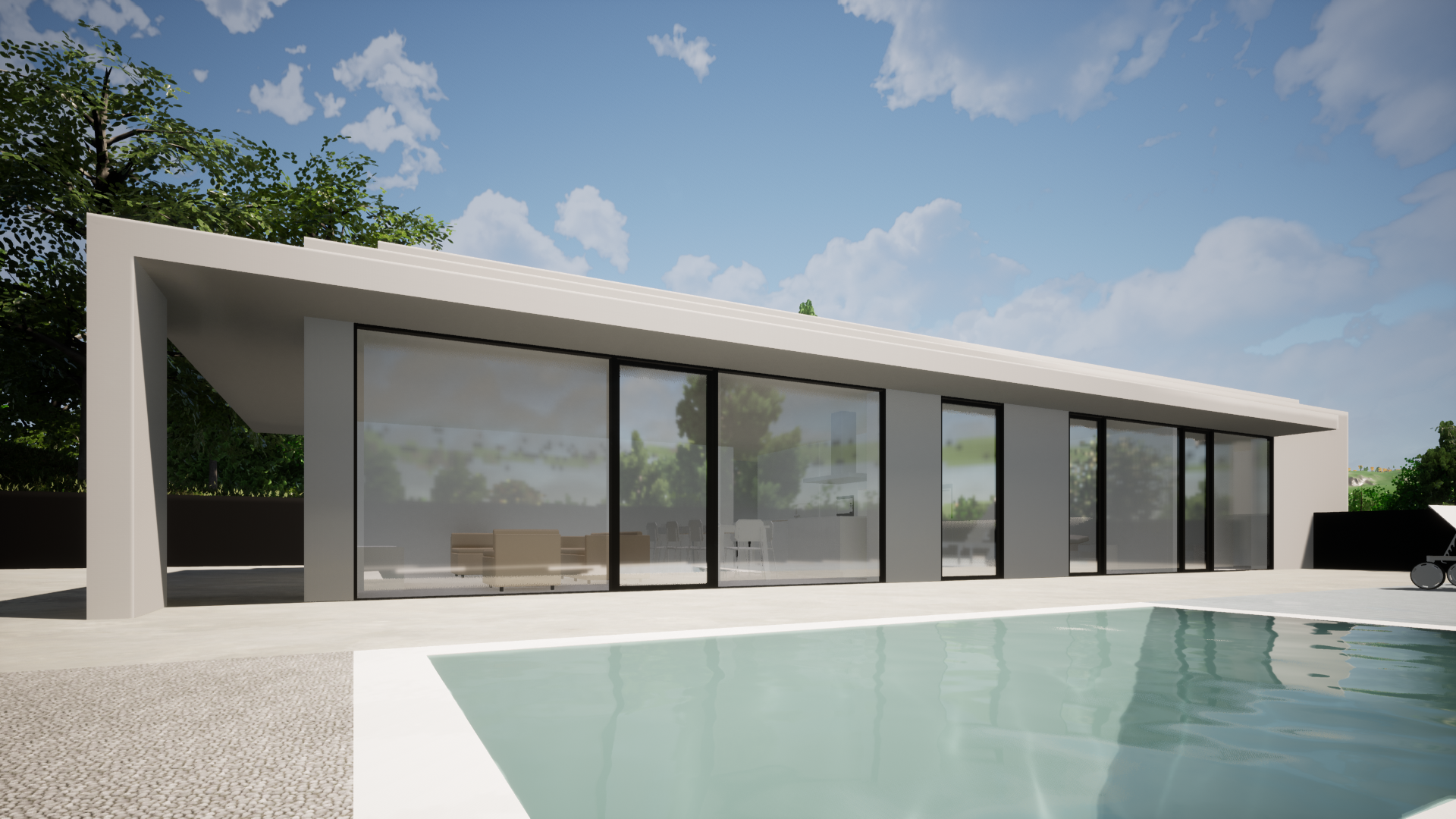 Funcionalmente, o programa estende-se pelos 2 pisos, sendo que no piso 0 se situam a garagem e a zona técnica, no piso 1 estão as zonas sociais de sala de estar, de jantar e cozinha, que se relacionam diretamente com o exterior, onde estão a piscina e os espaços de estadia externos. A zona privada, onde se distribuem os quartos, situa-se também neste piso, estando afastada da zona social.