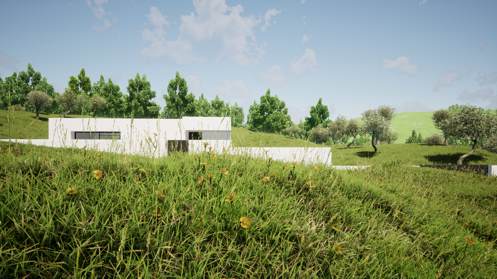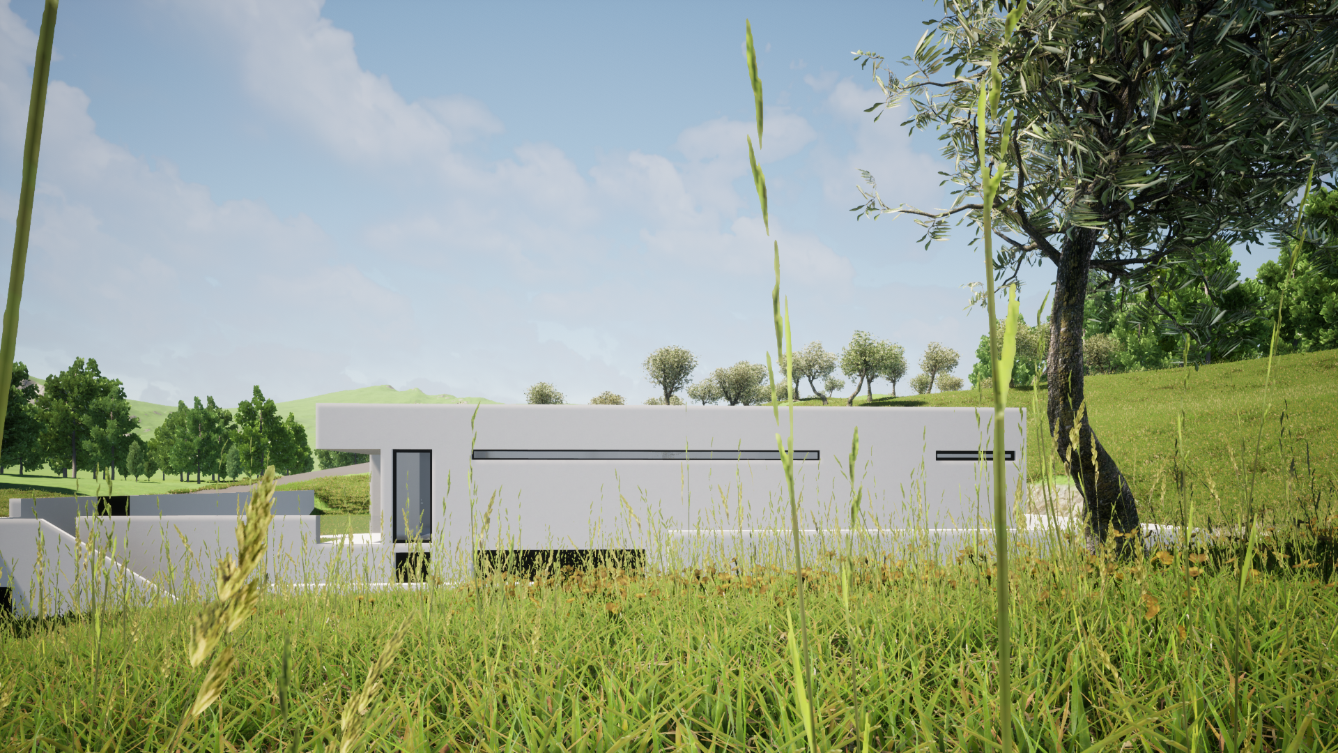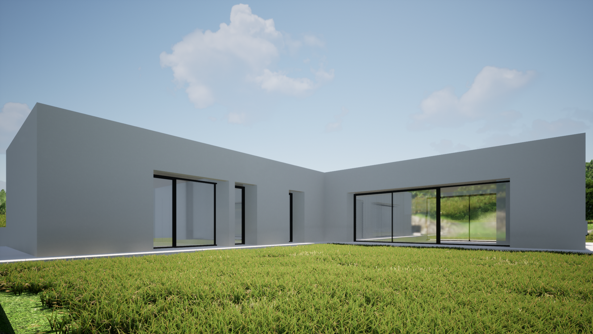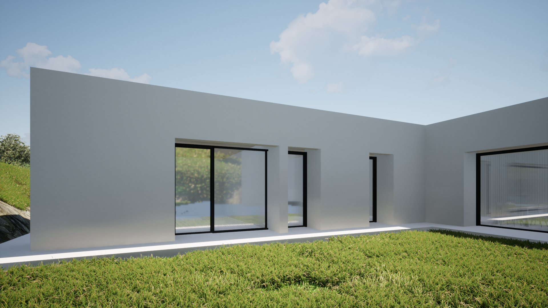 Esta casa implanta-se num terreno bastante amplo, apresentando ligeira inclinação. Como está isolada, tem uma excelente exposição solar. A forma da casa tenta adaptar-se ao terreno e ao seu desnível, desenvolvendo-se em 2 pisos e em forma de “L”, favorecendo a existência de um espaço exterior útil mais protegido e privado.