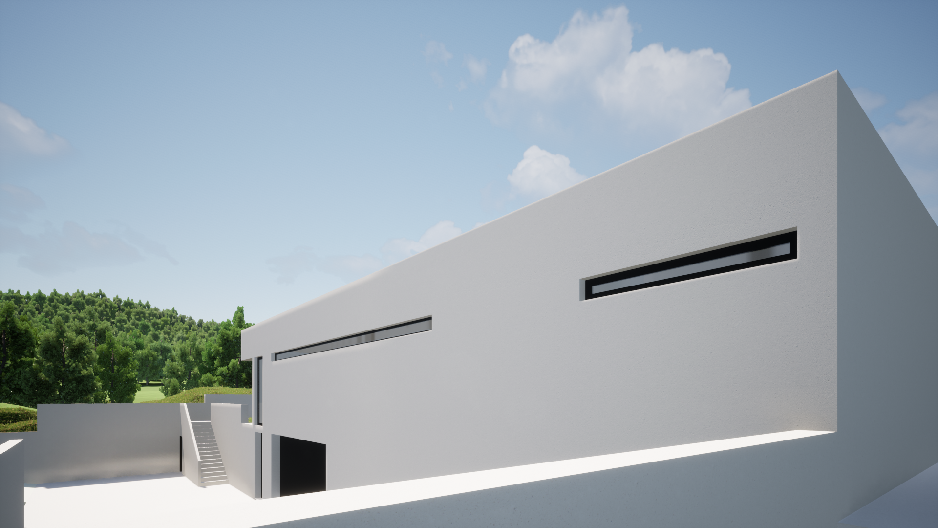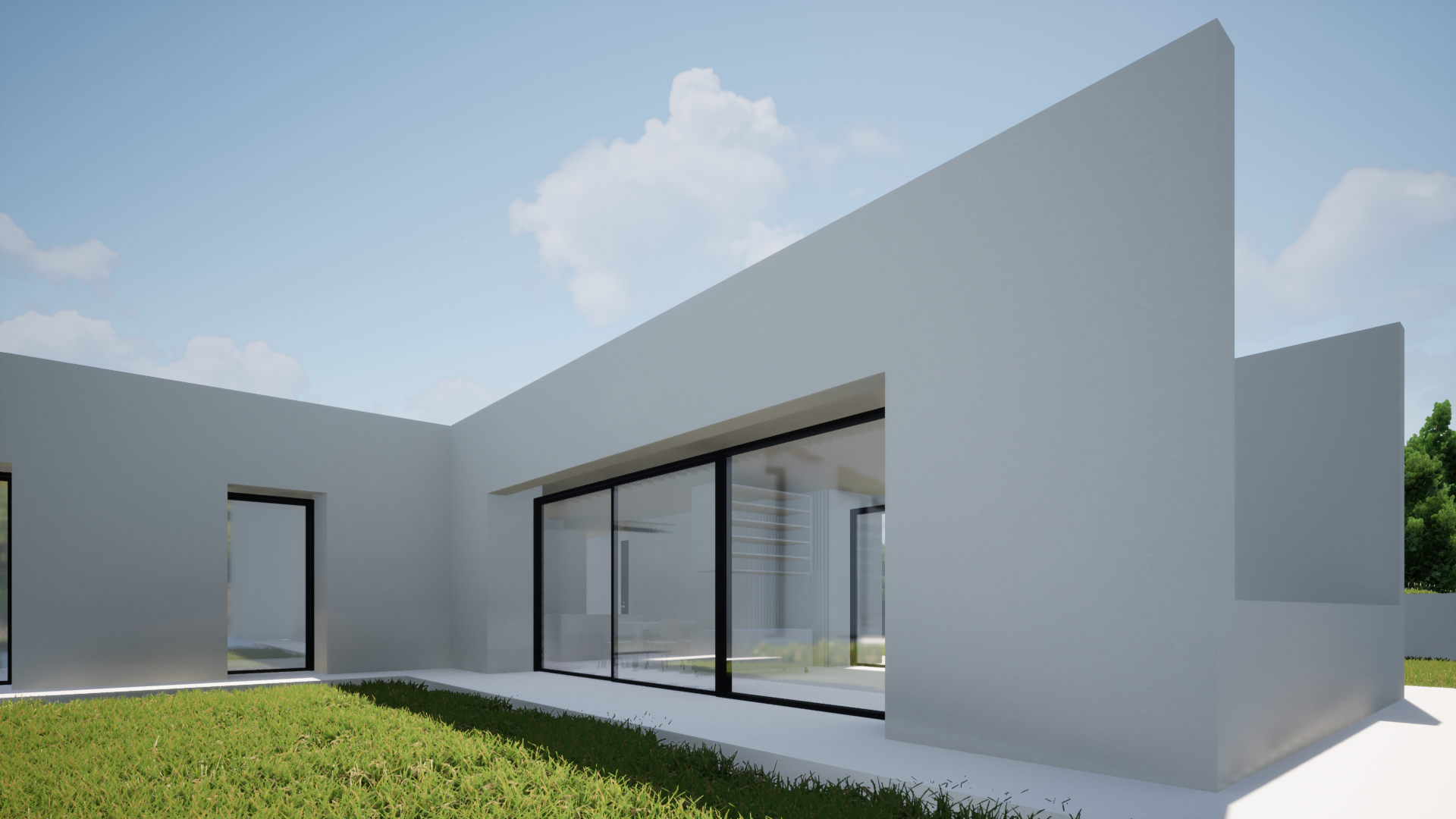 Funcionalmente o programa estende-se pelos 2 pisos. No piso 0 situam-se a garagem, o escritório, o ginásio e a zona técnica. No piso 1 os espaços organizam-se através de um eixo principal que distribui funcionalmente a casa, separando as zonas sociais e privadas.